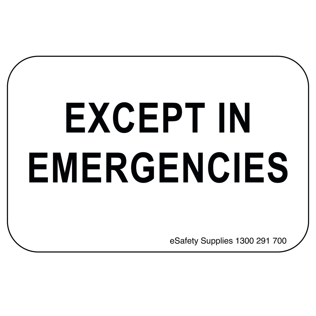 Regulatory Sign - Except In Emergencies - 150 x 600mm